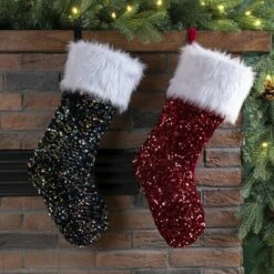 Hot Sale 👏 Glitzhome® Red & Navy Blue Sequin 🎄 Christmas Stocking 🔔