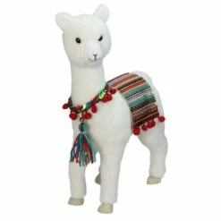 Wholesale 🔥 14″ White Plush Bohemian Standing Llama ❄ Christmas Figure with Pom Poms by Northlight 😀