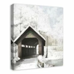 New 😉 Covered Bridge In Winter 20×24 Canvas Wall Art by Designs Direct 💯