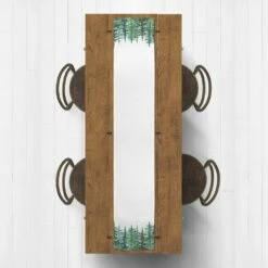 Best Sale 🔔 90″ Winter Watercolor Pine Forest Poly Twill Table Runner by Designs Direct ⭐