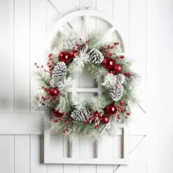 Deals ๐ฅ Glitzhome® Wooden Window Frame with Flocked Pinecone & Ornament Wreath โญ