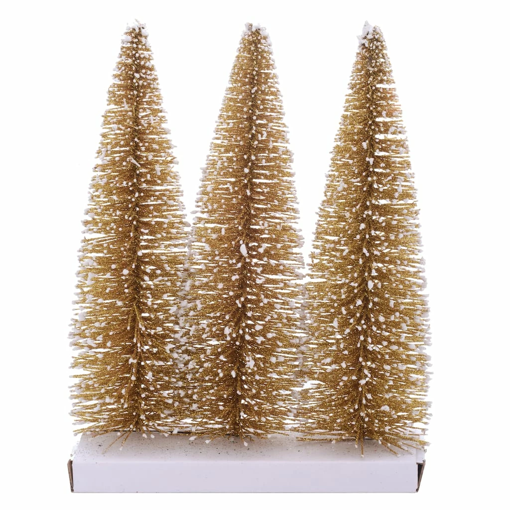 Bring depth and charm to your Christmas decorating with these darling gold bottle brush trees from Ashland. Display alongside wooden reindeer and bird figurines nestled in faux snow on your mantel for a magical winter scene to celebrate the holiday season in your home.
