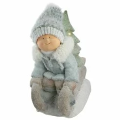 This adorable boy on a sled decoration will be the perfect addition to your Christmas dΓ©cor this year! Racing home with the Christmas tree on his sled, he is happy to join in your festivities. Perfect to place on any tabletop in your home or in a display in your retail store.
