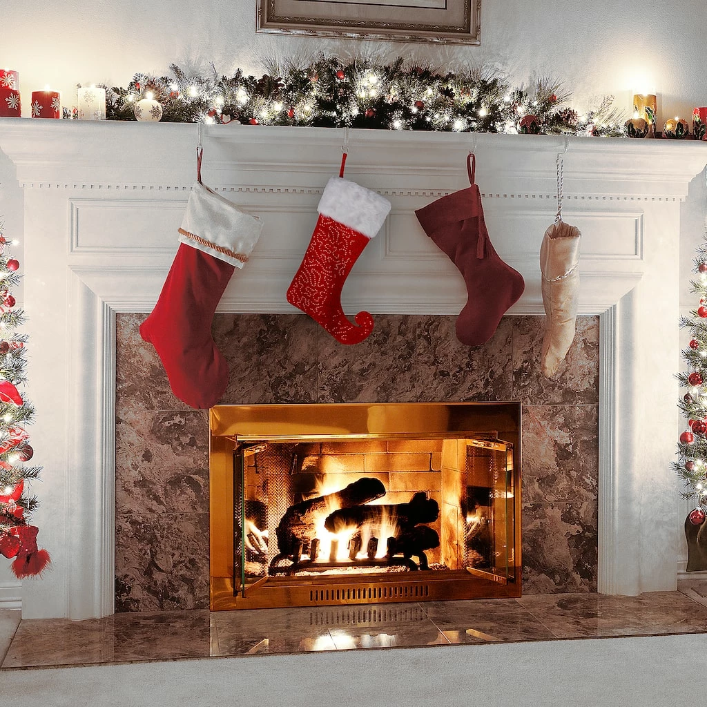 Combining fashion and function, this curled toe jester style Christmas stocking is deep and wide allowing Santa to fill it with lots of goodies. This seasonal sock features a bright red velvety fabric with a sequined pattern topped with a white soft faux fur cuff. Constructed of strong polyester materials designed for years of holiday cheer.