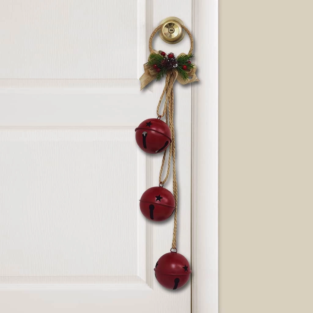 Ring the bells for Christmas with this bells door hanger. It adds a fun, festive touch to any holiday dΓ©cor. Place it on your front door, hang it from your mantle or wall, or put it in any area for enhanced seasonal cheer.