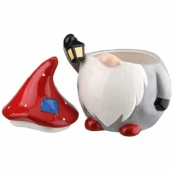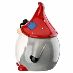 This decorative seasonal piece is constructed of glazed ceramic featuring handcrafted sculpting and hand-painted detail. A large white beard flows out from under the eyes-hiding pointed red cap of this gnome character dressed in warm winter gray. In his right hand he holds high a small lantern in an effort to light the way. This Winter Gnome will add a bit of whimsy to your holiday decorating scheme.