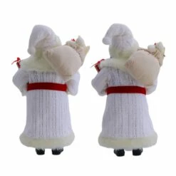Add a classic touch of Christmas to your holiday dรฉcor with this festive depiction of Santa. Wearing a white robe with fur trim, he carries a variety of gifts to share with the world!