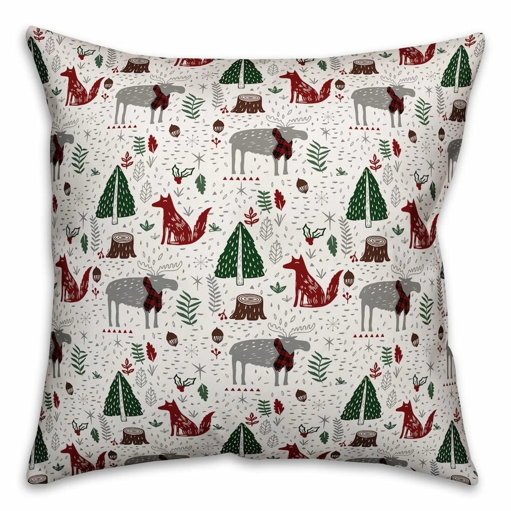 With a festive woodland creatures pattern design, this spun polyester throw pillow is an excellent accent piece for your home this holiday season.