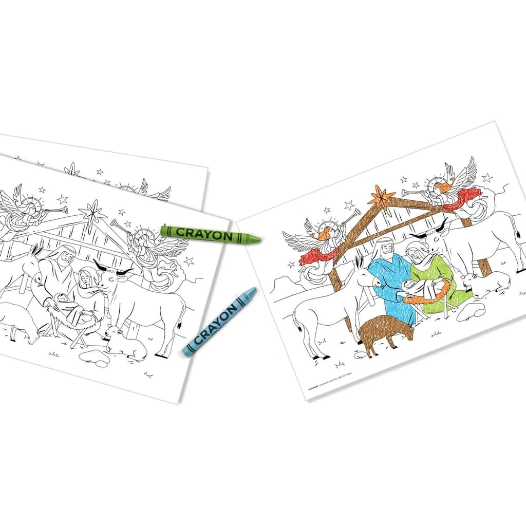 Keep your children busy during dinner with these Color-In Nativity Christmas Placemats. Each placemat features a classic nativity scene and is perfect for entertaining children.
