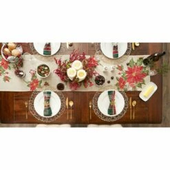 This beautiful embroidered table runner featuring poinsettia holly can be used all through the holiday season. Dress it up or down to create the perfect look for each place setting at your table. Don’t forget to pair with the matching cloth napkins, napkin rings, placemats and tablecloths from DII to complete the look for your next holiday meal.