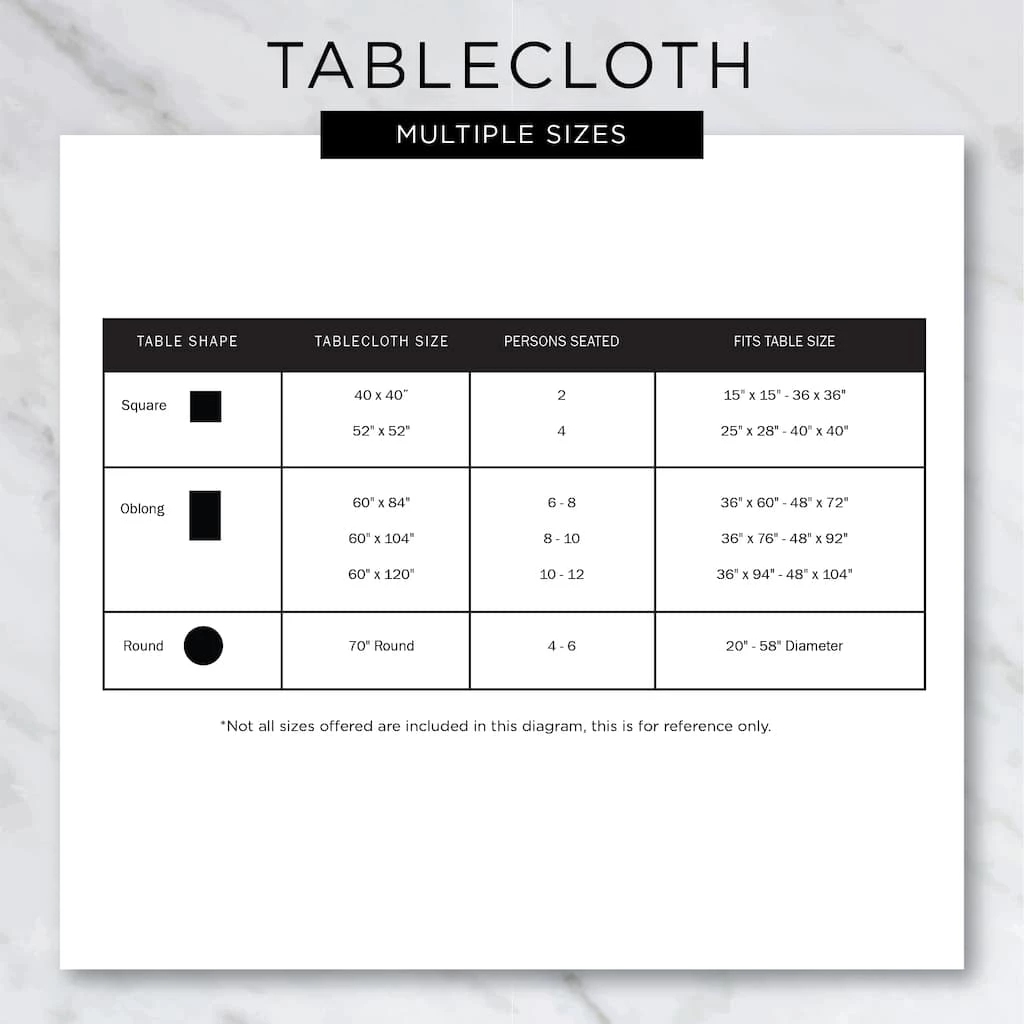 This tablecloth measures 70″ round with 1″ hem. Appropriate for a table that can seat 4 to 8 people. It can be used on its own or pair with other items in the collection. A eye-catching design for any kind of entertaining, our cotton tablecloth will add a rich, finished look.