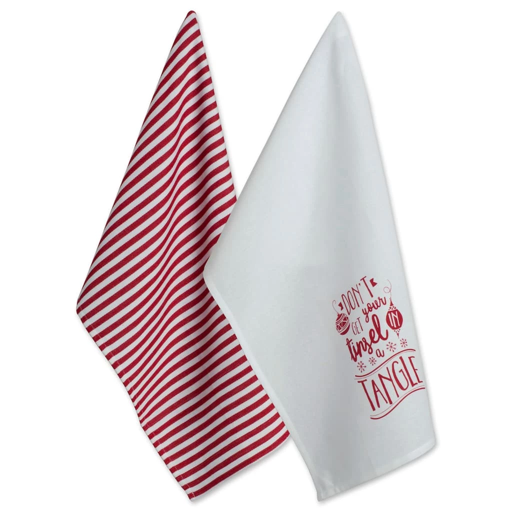 Each set includes 2 dishtowels to tackle all of your drying and cleaning kitchen tasks. Cotton Fabric, Machine Washable. Wash with Cold Water in Gentle Cycle and Tumble Dry Low. Do not bleach them or run them through a hot dryer. The festive design coordinates with most kitchen dรฉcor to add fun and joy to your kitchen. Perfect gift for holiday parties, birthdays, housewarming, and more.