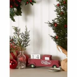 This Merry Christmas Truck calendar makes the countdown to Christmas fun for everyone. The entire family can enjoy this hanging wooden sign. Made of wood and tin, this charming farm truck can be added to shelves, fireplace mantles or tabletops.