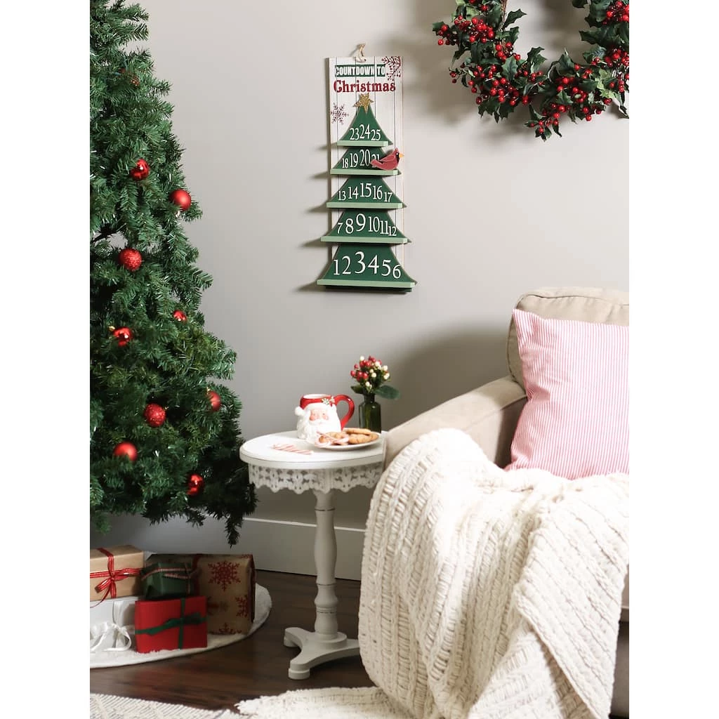 This advent calendar makes the countdown to Christmas fun for everyone. The entire family can enjoy this hanging wooden sign. Made of wood, this sign can be hung on your door for a magical hello, or indoors to complete your winter wonderland. Move the Christmas Cardinal each day as you count down to the most magical time of the year. Makes a great gift for friends and family.