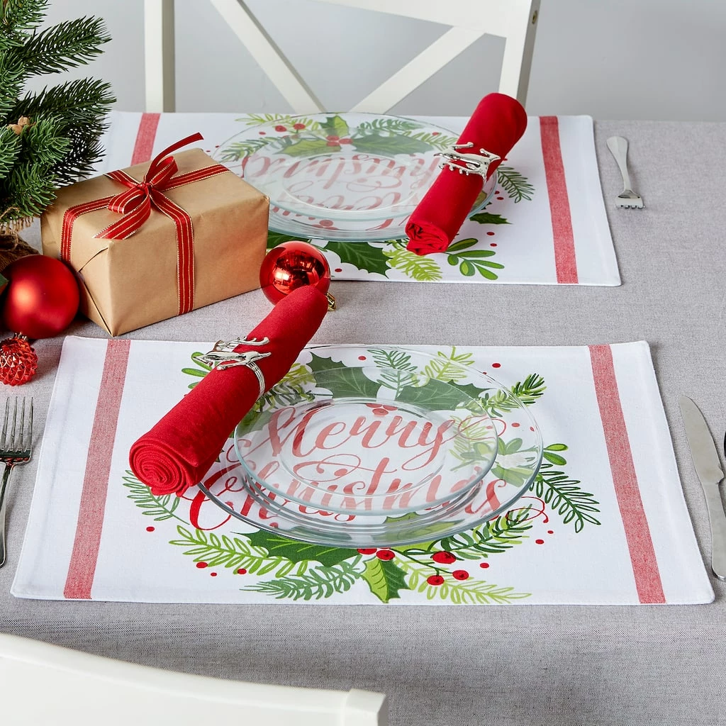 Entertain your guests and serve a big meal with this set of decorative placemats on your table. These placemats are a great basic to dress up into a formal meal or for something casual. Easily adds texture and interest to any table.ย