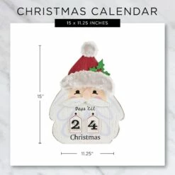 This hanging Santa calendar makes the countdown to Christmas fun for everyone. The entire family can enjoy this hanging wooden sign. Made of wood and tin, this sign can be hung on your door for a magical hello, or indoors to complete your winter wonderland. Date tiles are included.