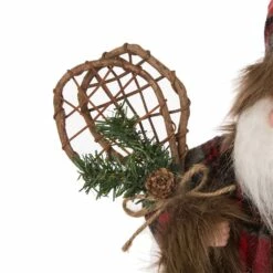 - Unique Features: plaid hat over the top with brown fake fur and jute rope around Santa’s waist to bring something different to Christmas
