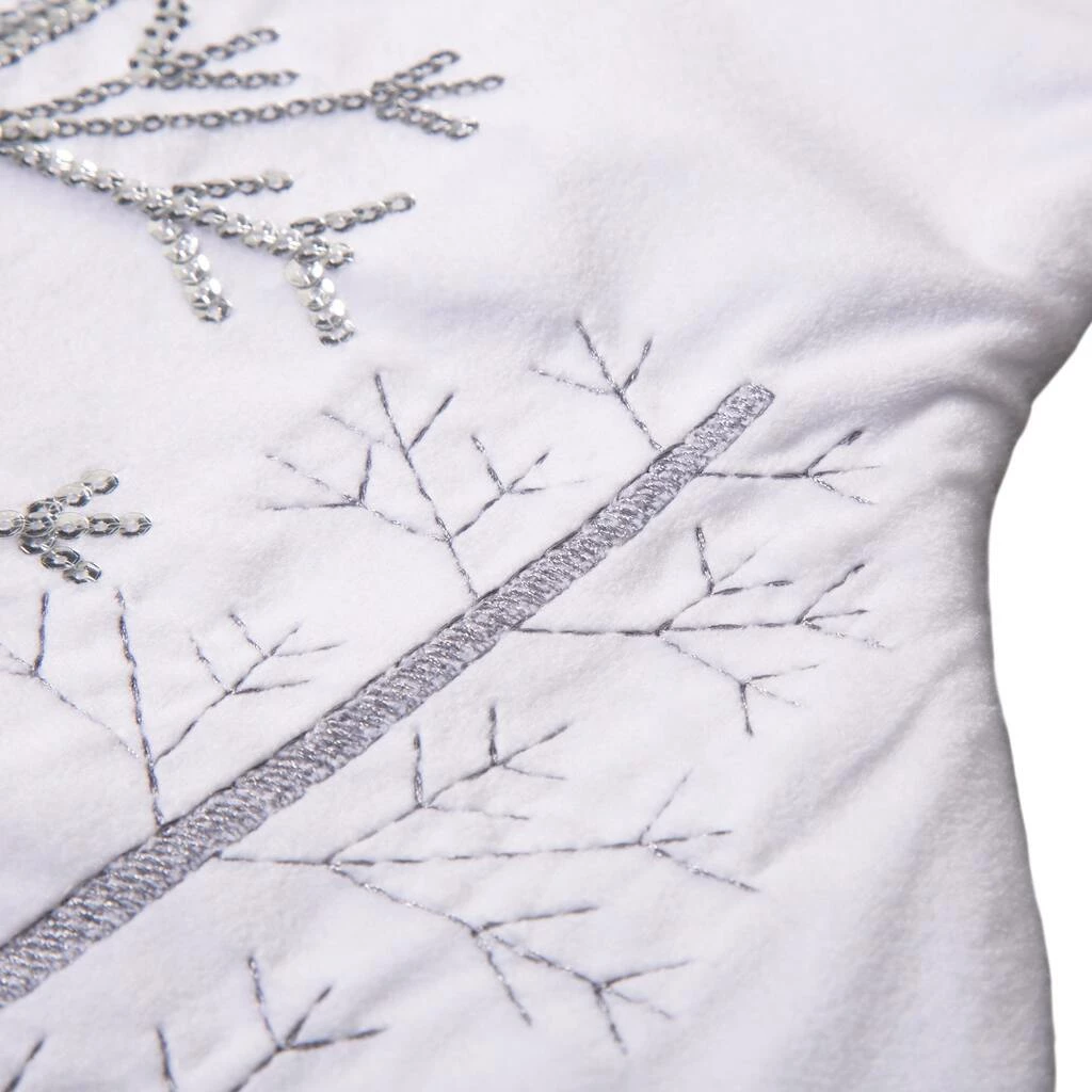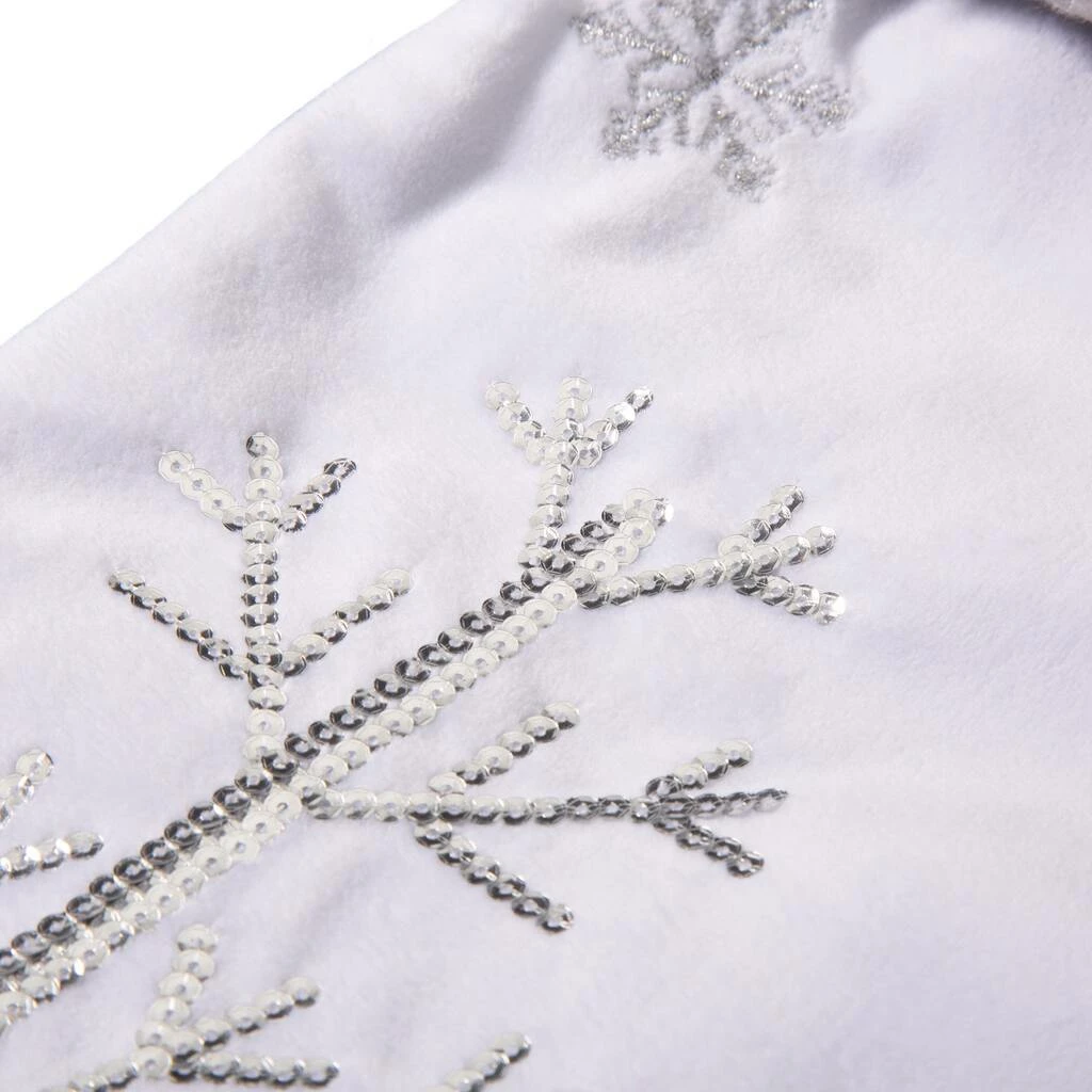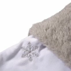 The white and silver tone of this super soft faux fur decorative Christmas stocking complements any Christmas dΓ©cor. Plush faux-fur makes up the full stocking, not just the cuff. Elegant and plush white velvet with silver sequin and embroidery.Β Β
