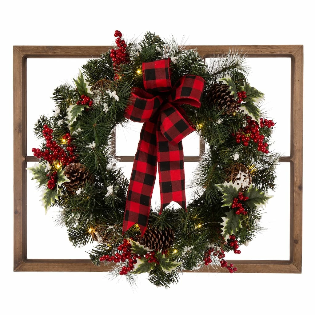 Empty entryway wall? Some spare space in the master suite? A boring bathroom? Wall art instantly turns any blank area into an eye-catching display, all while lending gallery-worthy appeal to your abode. Just take a look at this piece for example: Crafted from wood, its rustic frame supports a window frame design with a Christmas pine needle leaves wreath.