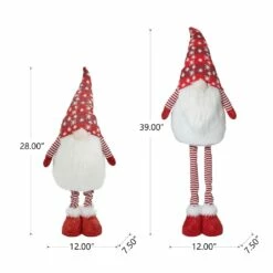 This friendly standing gnome with expanding long legs can be standing on the table or floor of your Holiday home. With its soft faux fur body, knitted hat and white beard, as well as the cute nose, it will bring back your childhood memories.
