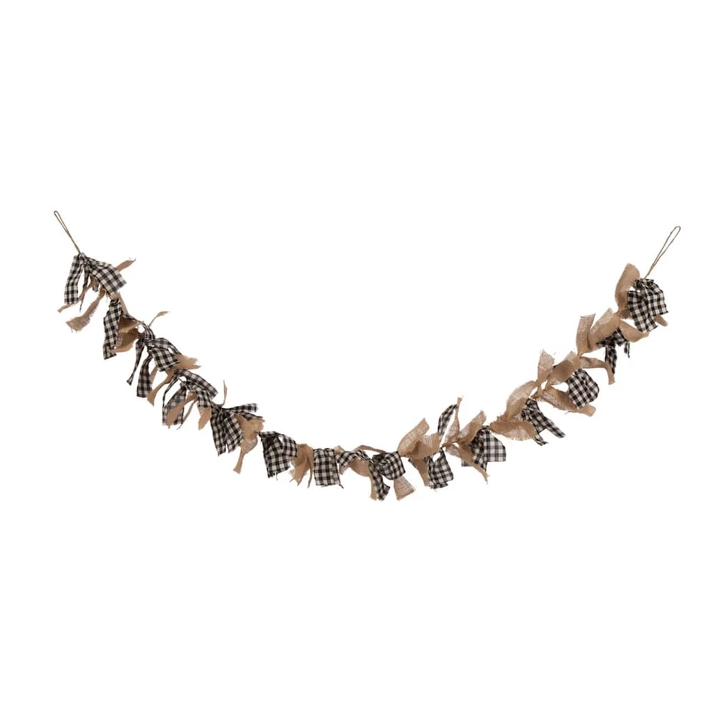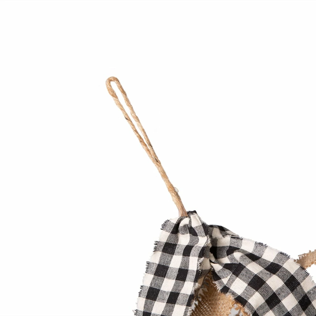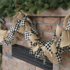 This stunning and unique fabric garland would be excellent to accent your Christmas tree and home. It features white and black plaid strips of fabric and linen linked together in a hemp rope to form a messy beautiful garland that’s perfect for your front door or your walls.
