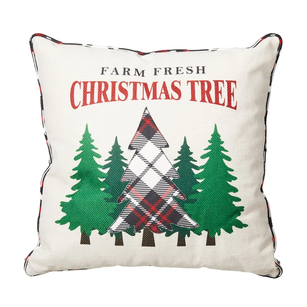 This beautiful heavy cotton Christmas pillow is adorned with trees and Christmas sentiments in front and has plaid fabric on the back. Surely a perfect choice for home decoration and centerpiece in your living room.