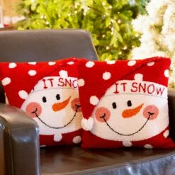 This Set of 2 Hooked Pillow is handmade with 3D snowman design, the hooked fabric is very durable, adding a warm and soft touch to your home places. It can be placed on sofa, bed for daily use or as festival decorative piece. Cozy feel, super soft and flexible texture.