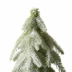 Bring a wintery feel to your home with this set of two lighted table trees. This Christmas tree set is crafted with artificial heavy snow and twined by warm light string. The bottoms are wrapped by sackcloth. They will be an eye-catching addition to any room during the Christmas holidays.