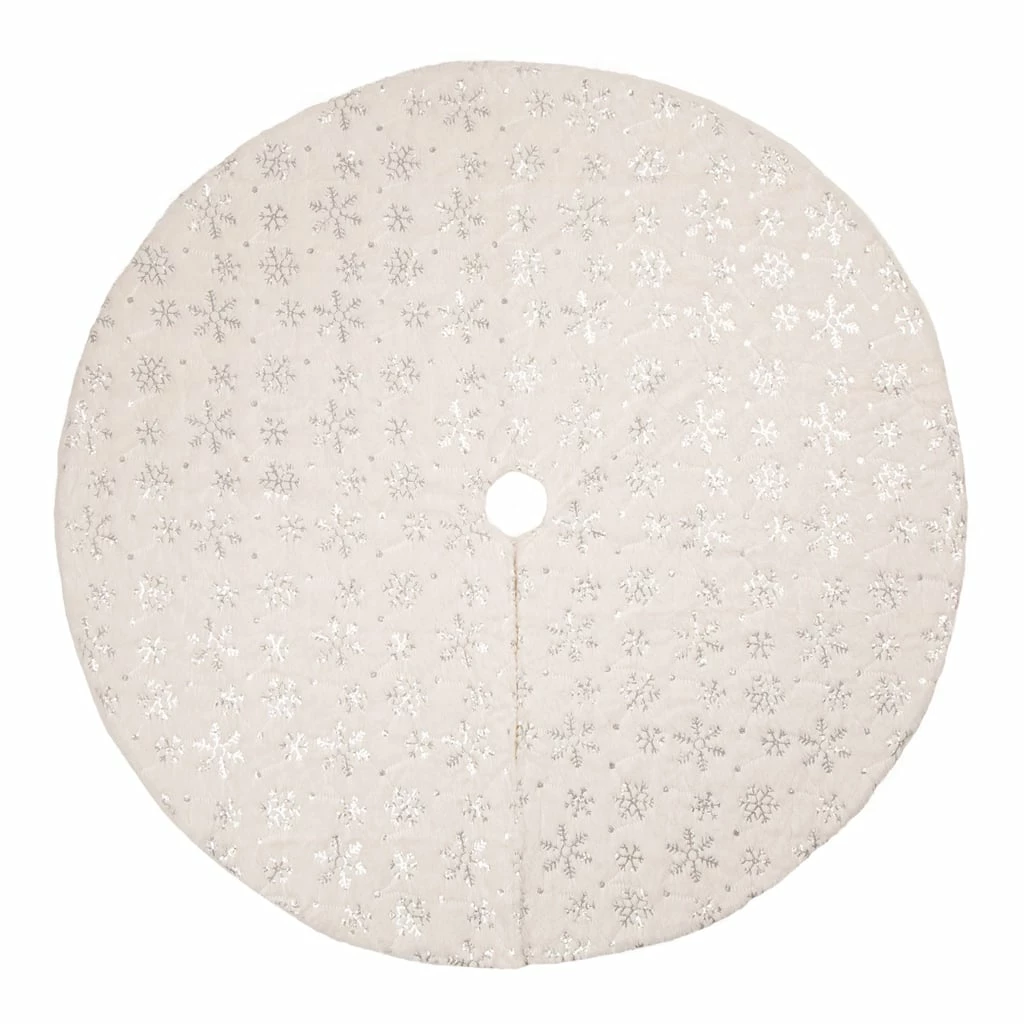 Add a bright, cozy touch to your holiday décor with this white snowflakes stocking and tree skirt group. Featuring a faux fur white trim, vivid embroidery snowflakes and with a lovely beaded design on a Ivory white plush velvet fabric. these beautiful Christmas decoration are sure to bring charm to your home.
