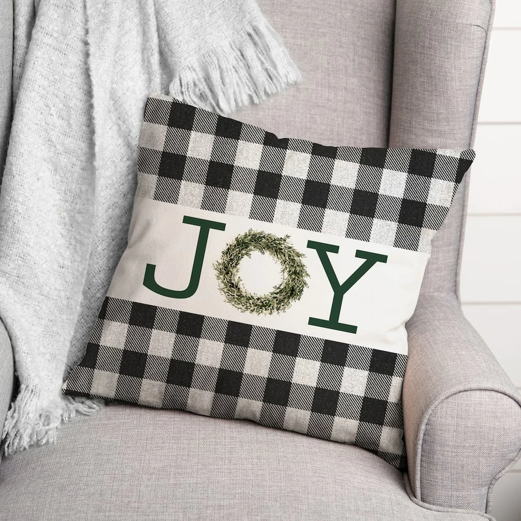 Hot Sale β€οΈ Joy Wreath Green 18×18 Throw Pillow by Designs Direct π