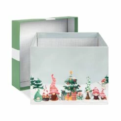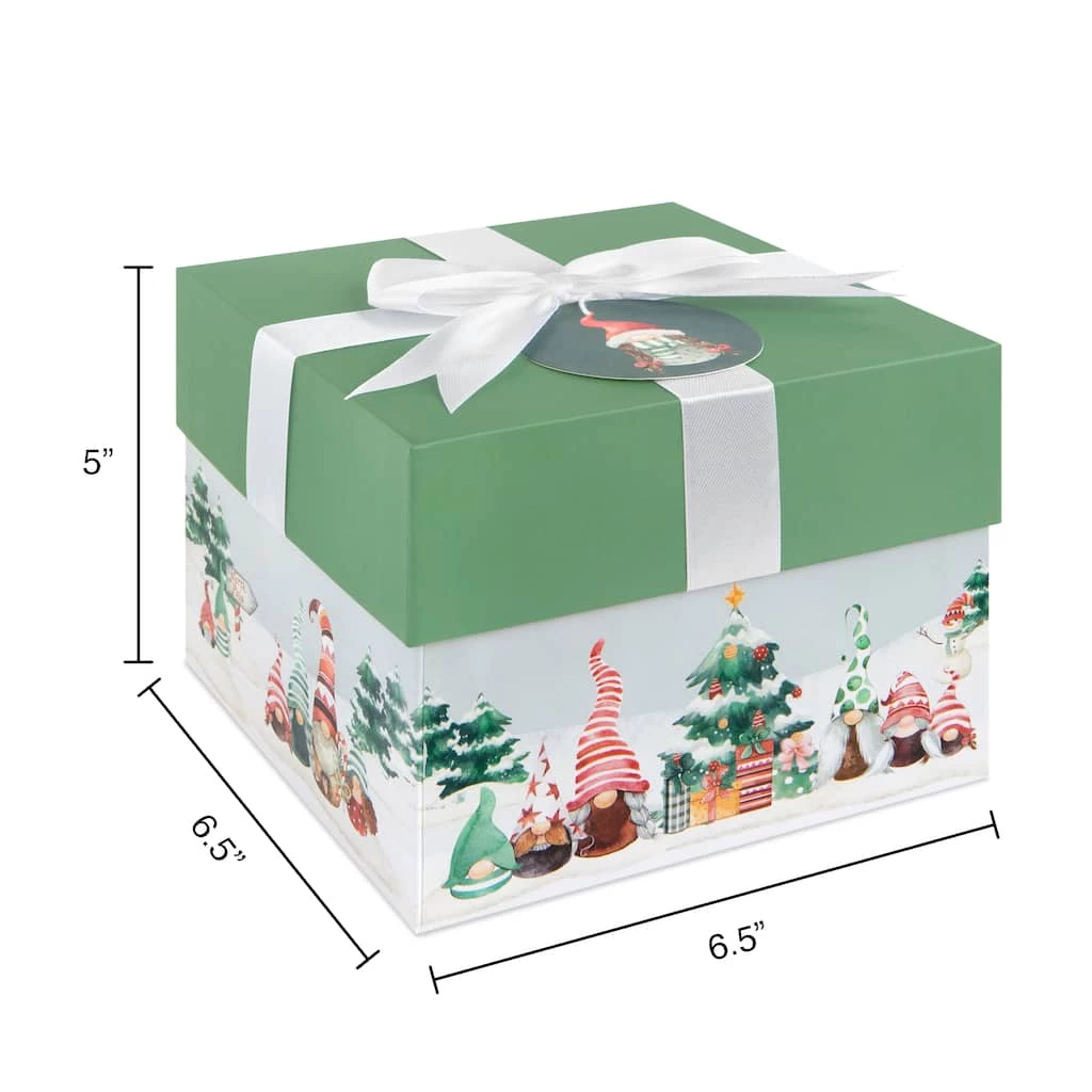 Featuring an adorable design of gnomes in oversized pointy hats celebrating the holidays, this charming box is a fantastic way to dress up your holiday presents with festive flair. With a pretty satin bow and coordinating tag, use for decorating under the tree or to hold a special gift sure to stand out as you celebrate the Christmas season with your loved ones.