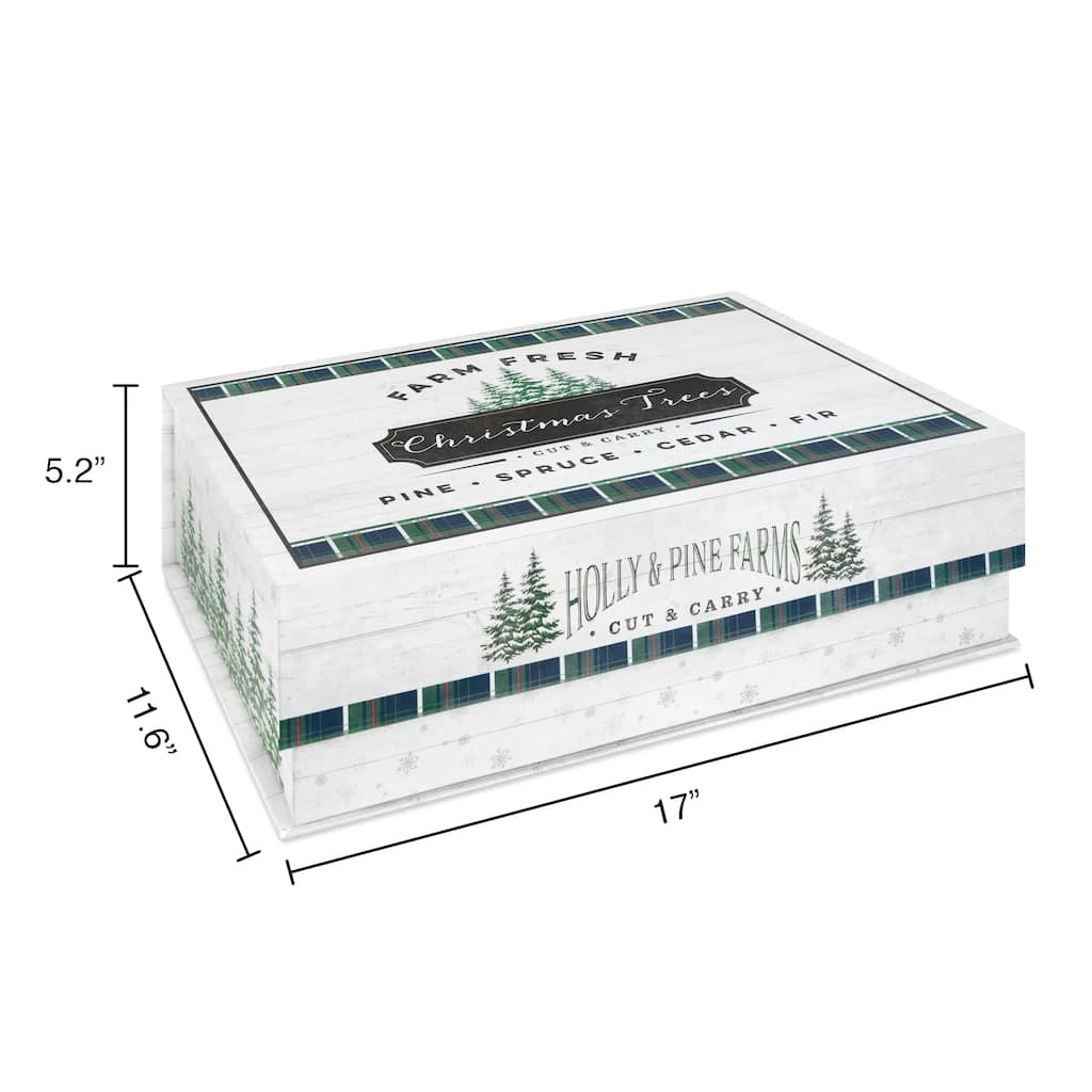This flip top decorative box is the perfect piece for your home dΓ©cor and storage. It features “Farm fresh Christmas trees” and a seasonal design with trees.