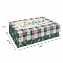 This flip top decorative box is the perfect piece for your home dΓ©cor and storage. It features a seasonal design with “It’s the most wonderful time of the year”, Christmas trees, and a plaid design on the flap.