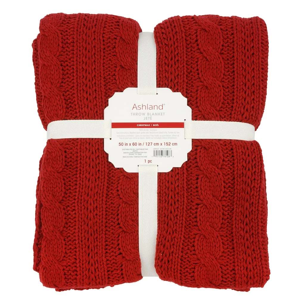 Perfect for the holiday season, decorate your home with this comfy cable knit throw by Ashland. Place it on your couch or reading chair with a matching pillow for a festive display.