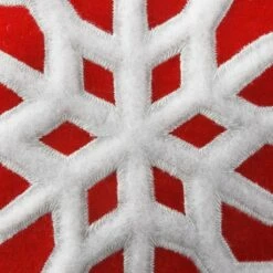 This bright red pillow echoes the shape of the contrasting large white snowflake at its center. The design is embroidered on the pillow front side with solid red fabric on the back side. Add a touch of whimsy to your holiday decorating scheme with this colorful cushion.