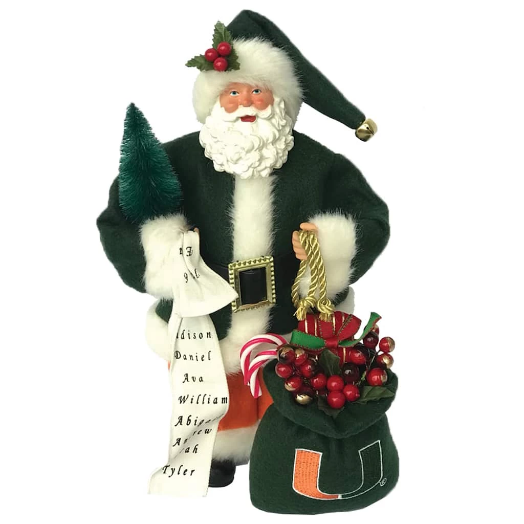 Has your team been good this year? Really good? Well, even if your favorite team didn’t take the championship, Santa Claus will make sure you have a winning season! Toting his Christmas list and a big sack of goodies proudly emblazoned with his favorite college logo, Santa is ready to round up his reindeer and head to your town. Make your holiday season one to remember with this wonderfully handcrafted and hand painted 12″ College Santa.