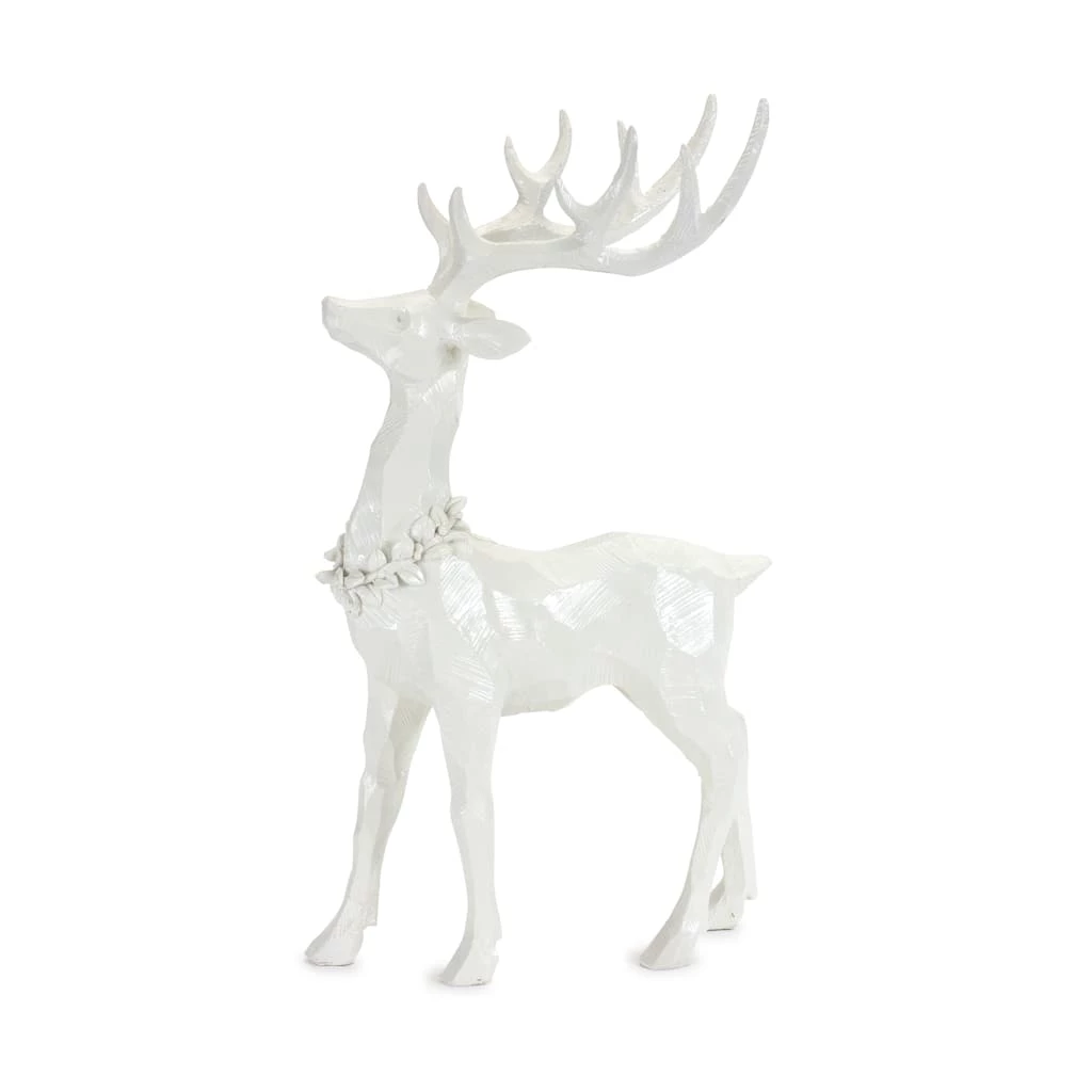 Add a modern touch of nature to your holiday dΓ©cor with this beautiful set of deer figurines. Featuring two assorted sizes, the sleek white finish paired with the wreath accent is the perfect combination to create a stunning Christmas display. The quality polyresin and stone powder composition is sure to last for seasons to come. Display the pieces together to make a statement, or display them alongside your other holiday decor to add character to the space.