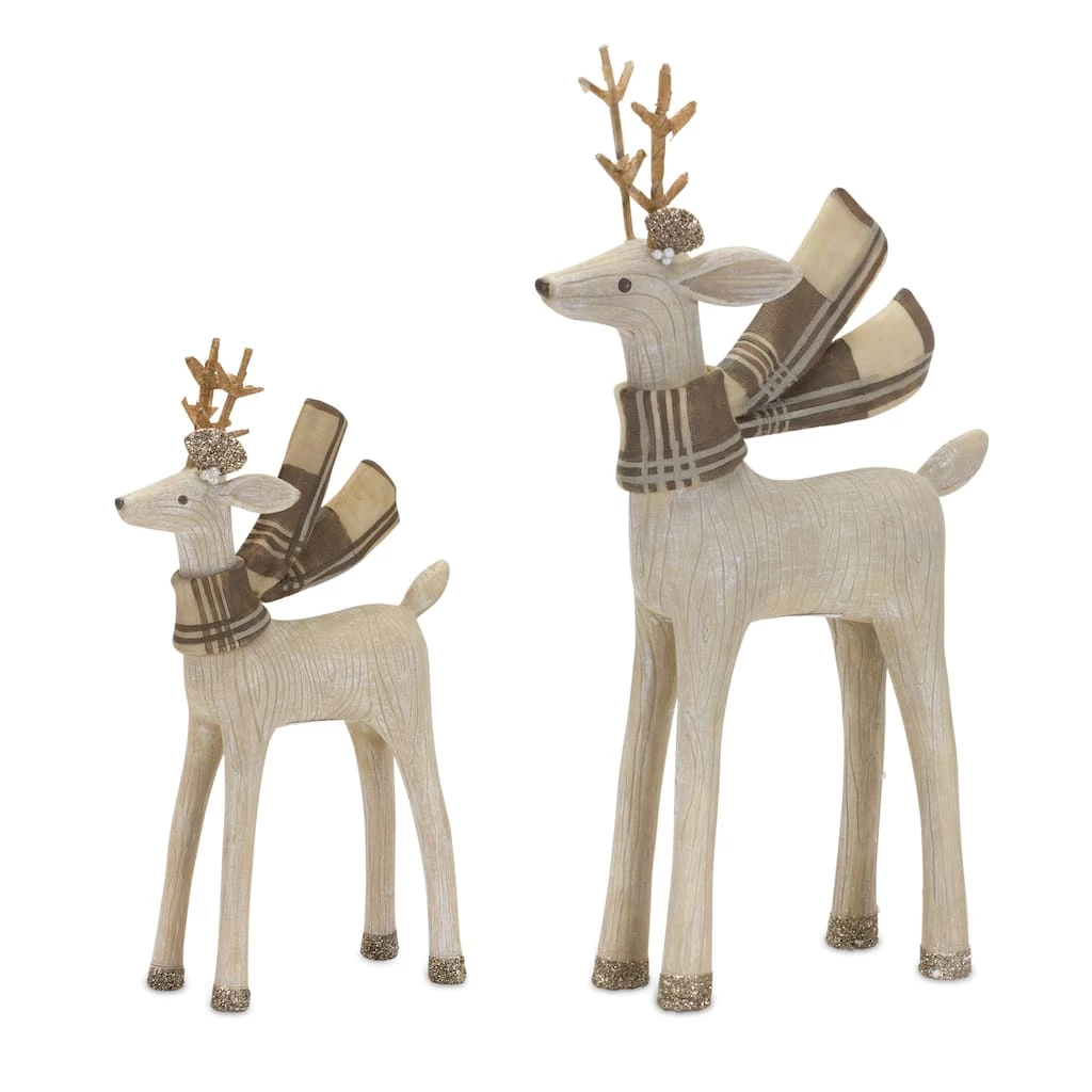 Add a modern touch of nature to your holiday dΓ©cor with this beautiful set of deer figurines. Featuring two assorted designs, the whitewashed finish paired with the cute scarf accent is the perfect combination to create a stunning Christmas display. The quality polyresin composition is sure to last for seasons to come. Display the pieces together to make a statement, or display them alongside your other holiday dΓ©cor to add character to the space.