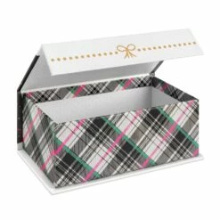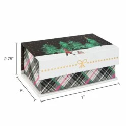 This flip top decorative box is the perfect piece for your home dΓ©cor and storage. It features a seasonal design with a winter scene and a plaid design on the flap.